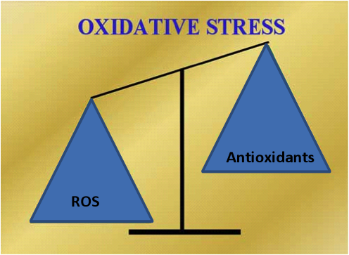 This imbalance can happen from low antioxidant supply in the body either from low dietary intake or poor distribution; or from a high amount of ROS form from environmental or physiological causes.